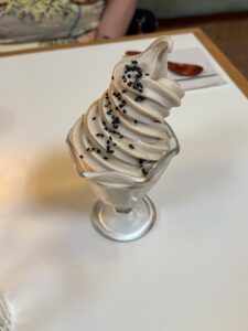 The white sesame soft-serve surprised us with its sweet, luscious flavor, and the melonade (honeydew lemonade) with fragrant shiso tea made for a fun, unexpected combo that was very refreshing in the excessive heat and humidity.