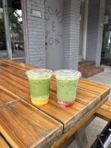 A more neighborly but very popular tiny tea chop, I went for an iced strawberry matcha latte, and my daughter chose mango-both sweet, vibrant, and just cold enough to cut through the heat.