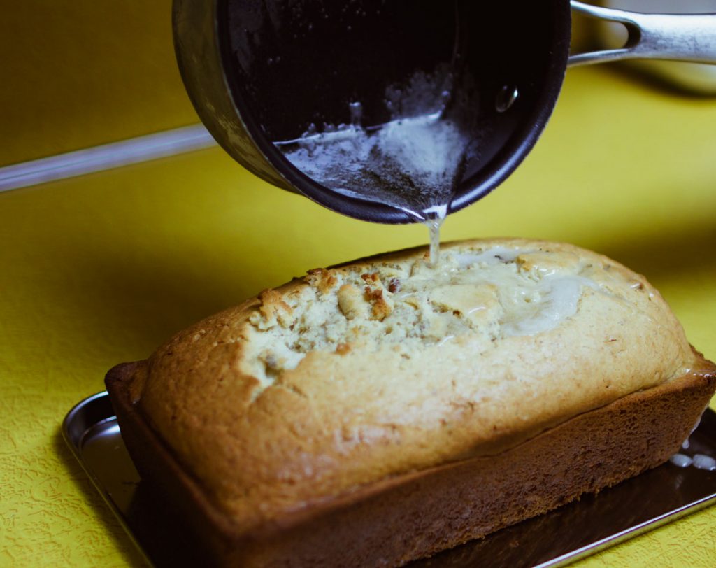 - Preheat the oven to 350F. Combine flour, baking powder and salt in a bowl. Blend in butter until mixture resembles coarse meal. Mix in 1 cup sugar. Stir in fresh yuzu or meyer lemon peel.Blend beaten eggs with milk, add sour cream and combine with dry ingredients until just mixed. Combine lightly with walnuts.Pour into a buttered and floured loaf pan. Bake until a toothpick placed in the center comes out clean–roughly 1-1/4 hours.Boil yuzu juice and 5 tablespoons sugar for 5 minutes, or until thickened. Pour this mixture evenly over the hot cake, then cool thoroughly.
